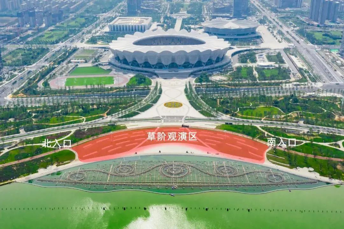 位于水秀表演区东侧,是近距离观赏水秀表演的绝佳位置,除此之外草阶区规划有观演休憩设施,有老人的家庭可在这里一边休憩,一边观赏演出。