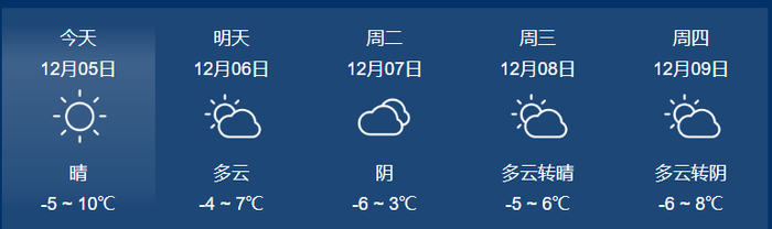 预计12月4日夜间到5日白天,全省各地晴或多云,其中酒泉、嘉峪关两市伴有4到5级偏东风。
