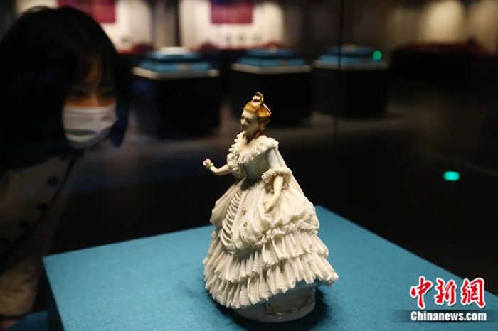 2021年1月,“白色金子·东西瓷都——从景德镇到梅森瓷器大展”在江西省博物馆新馆举行。图为德国梅森瓷器作品。中新社记者 刘占昆 摄
