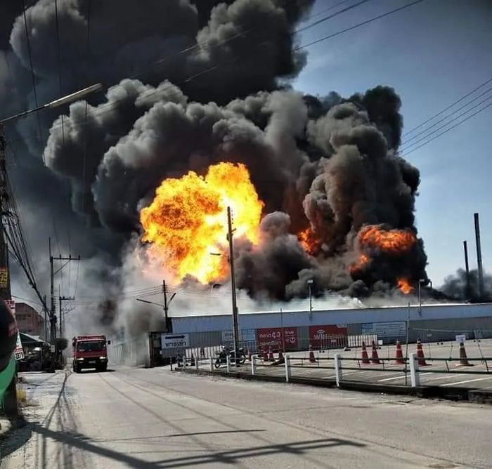 当地时间11月29日,泰国佛统府一座生产机油的工厂突发火灾。