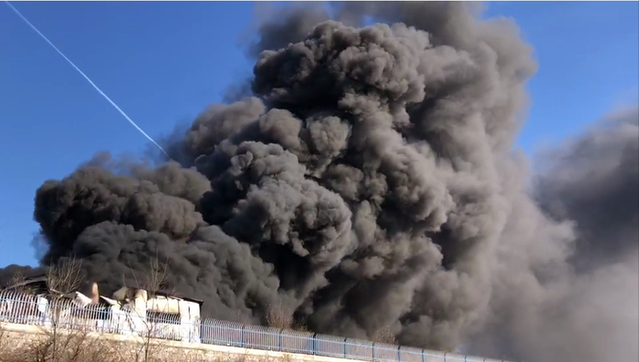 12月2日,辽宁省锦州市义县头道河镇一储存油泥的厂房发生火灾。