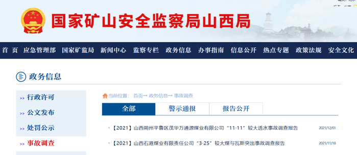 国家矿山安全监察局山西局发布两起煤矿事故调查报告