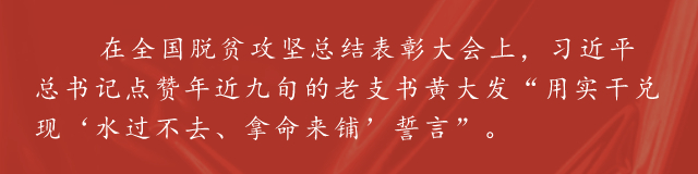 为改变草王坝村千百年来缺水的历史,黄大发从上世纪60年代开始,带领村民钢钎凿、风钻敲,在悬崖上修水渠。他说:“修不好我把名字倒过来写,我拿党籍来作保证,我拿命来换!”前后历经30余年,黄大发在峭壁间挖出一条10公里的“天渠”。这条水渠,绕三重大山,过三道绝壁,穿三道险崖。水通了,黄大发又带领群众开展“坡改梯”,稻田从240亩增至720亩……通渠的那一年,村里通了电,又修通了通村公路,领头的还是黄大发。