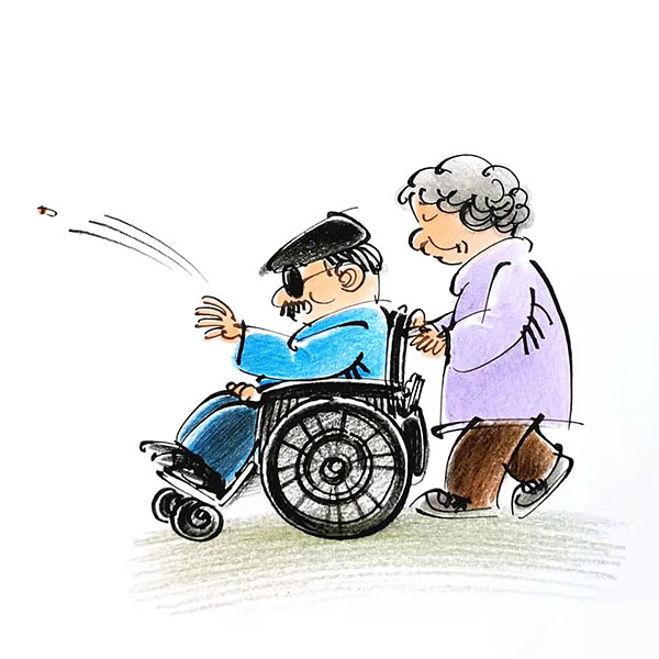 11月2日傍晚,我像往常一样下班往地铁站走去。前面一对老夫妻:老爷爷坐在轮椅上,戴着黑帽子、黑眼镜,穿着皮鞋,老奶奶在后面推着他。看到这一幕不免有些温暖。但当我准备超过去往地铁站赶的时候,老爷爷右手一甩,一个带点火光的东西从我面前飘过,丢在了旁边的人行道上。我定睛一看,原来是没有抽完的半根香烟,还在燃着。看他那个潇洒娴熟的动作,想必也不是第一次了吧。丢了以后两个人再没有半点动作,推着轮椅径直往前去了。