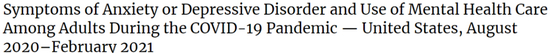 美国疾病控制和预防中心今年3月发布的一项更广泛的全国性研究显示,出现抑郁症症状的成年人比例从2020年8月的24.5%上升至当年12月的30.2%。