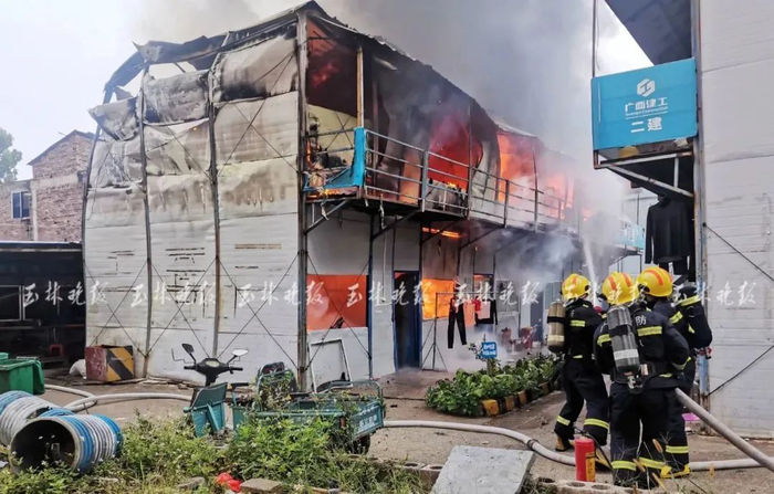 2021年11月1日,广西玉林市玉州区江南路一工地因工人吸烟后乱扔未熄灭的烟头,最后引燃了工地板房,导致数间板房被烧毁,所幸没造成人员伤亡。
