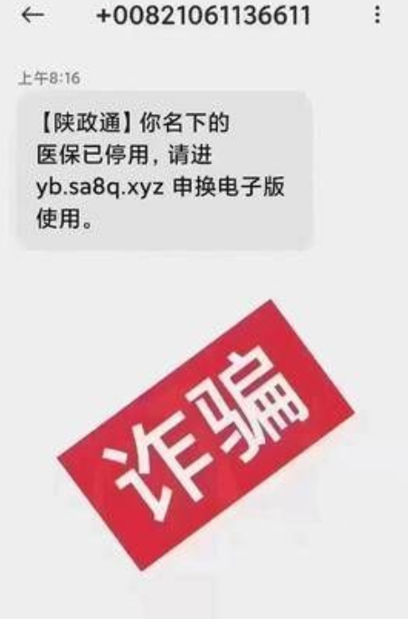 西安警方提醒:以医保卡升级为名的短信链接为诈骗