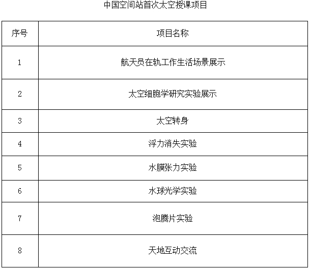 据中国载人航天工程办公室消息,“天宫课堂”第一课定于12月9日下午开始,神十三航天员即将太空授课。本次太空授课活动将采取天地互动方式进行,翟志刚、王亚平、叶光富将在轨介绍展示中国空间站工作生活场景,演示微重力环境下细胞学实验等现象。
