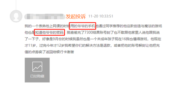 关键词:未成年人游戏充值退费问题多 客服消极处理