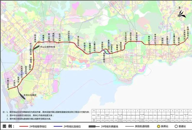 轨道24号线是联系南山、福田与罗湖的一条普速线路,承担中心城区东西向交通联系功能,增强对沿线重点发展片区、公共服务设施和交通热点片区的轨道覆盖。