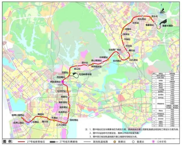 轨道27号线是前海至坂雪岗的一条普速线路,主要承担前海、南山与龙华轴向轨道联系功能,缓解主要交通走廊及跨关交通压力,实现前海南山中心与龙华中心45分钟通达的规划目标。