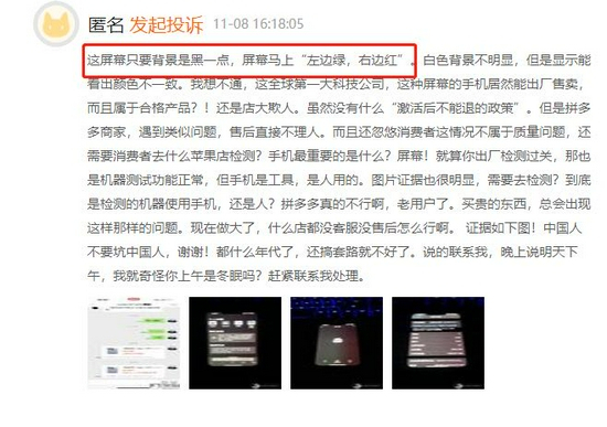 11月黑猫投诉手机领域红黑榜——iphone系列手机绿屏问题严重