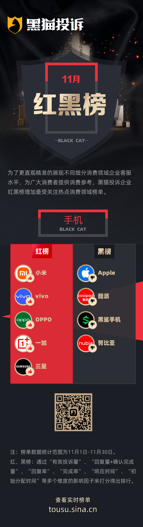 黑猫投诉11月行业榜单