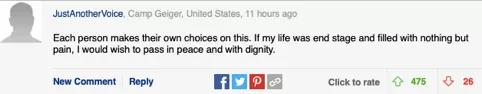 “对这件事相信每个人都有自己的选择。而如果我的人生处于最后阶段,除了疼痛其它一无所有,那我我会希望平静和有尊严地离开。”