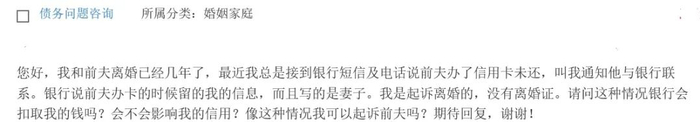 您好,我和前夫离婚已经几年了,最近我总是接到银行短信及电话说前夫办了信用卡未还,叫我通知他与银行联系。银行说前夫办卡的时候留的我的信息,而且身份写的是妻子。我是起诉离婚的,没有离婚证。请问这种情况银行会扣取我的钱吗?会不会影响我的信用?像这种情况我可以起诉前夫吗?