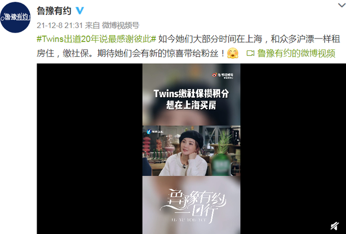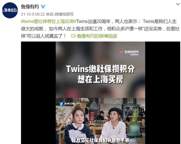 原标题:继杨千嬅后,Twins自曝两人在上海生活和工作,“还没买房在缴社保”