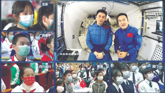 2013年6月20日,在神舟十号任务期间,王亚平在聂海胜、张晓光的协助下,为全国6000余万中小学生带来了一堂别开生面的天地互动太空课堂。时隔8年,中国航天员再次进行太空授课,有许多新亮点。