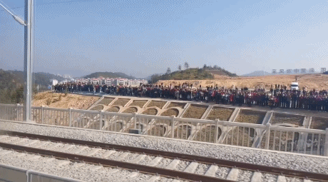 今天(10日)上午9时,京港高铁赣州至深圳段正式开通运营。当首趟列车经过赣州市定南县时,不少赣南革命老区群众纷纷自发站在高铁线路外围驻足观看,大家远远地看着高铁列车瞬间穿过,目送列车驶向远方。