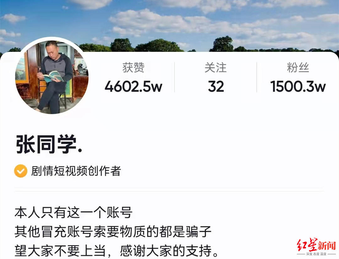 作家张丰告诉红星新闻,“张同学”剪辑很专业、在技术上非常成熟,这是他走红的重要原因,“以乡村为主题的视频很多,并不是有手机就能成功。张同学能自觉利用短视频时代的表达手段。”