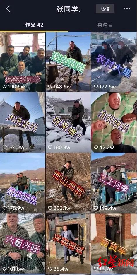“去年我就和‘张同学’分开了。”“八零愣子”告诉红星新闻,目前,他的抖音号中,两人合作的视频仅余两三个,其余均为他自己的作品。至于分开原因,“并不是大家说的谁踹的谁,没有什么利益纠葛,今年也合拍过。”