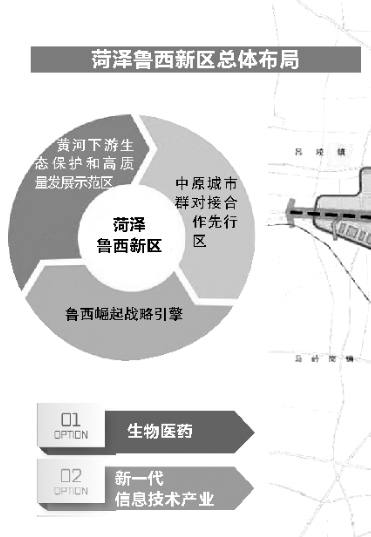 同时,菏泽鲁西新区还是中原城市群对接合作的先行区。发挥新亚欧大陆桥国际经济合作走廊、中原城市群重要节点作用,带动鲁南经济圈与中原经济区合作,增强山东向中西部地区辐射能力,构建双向开放新格局。