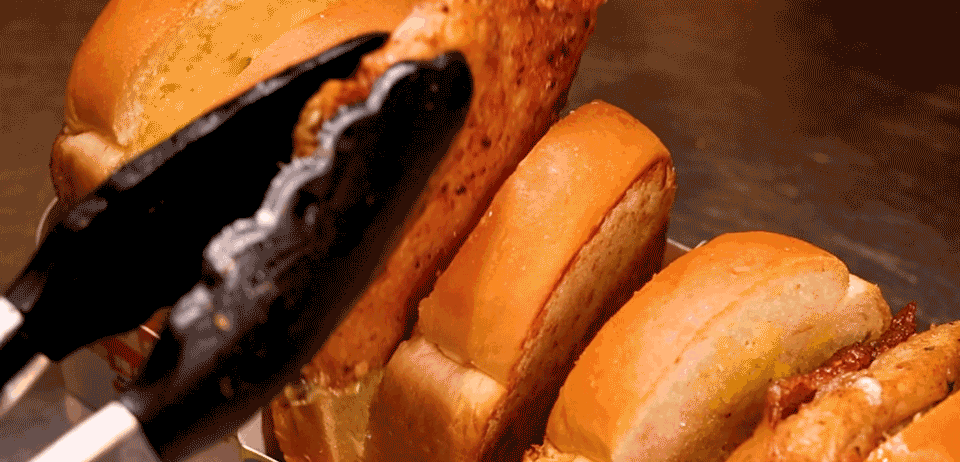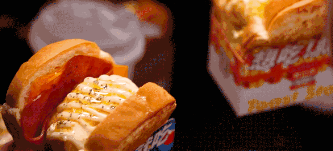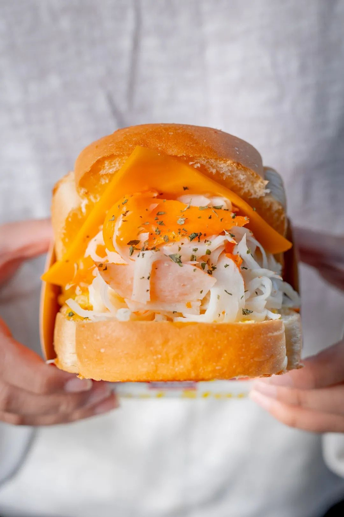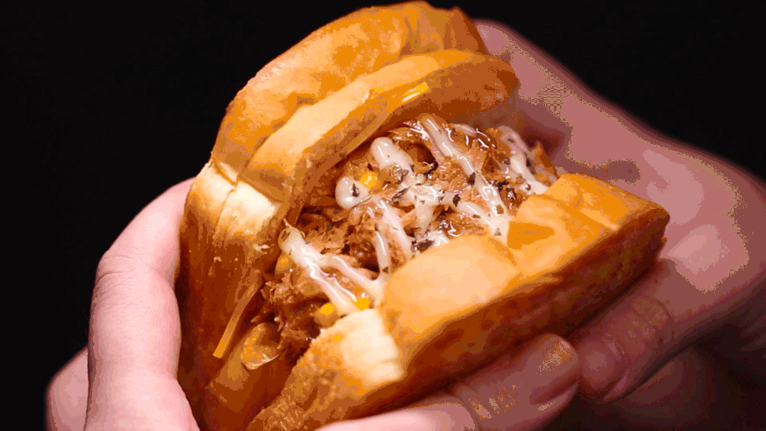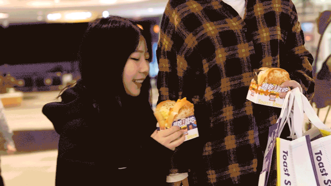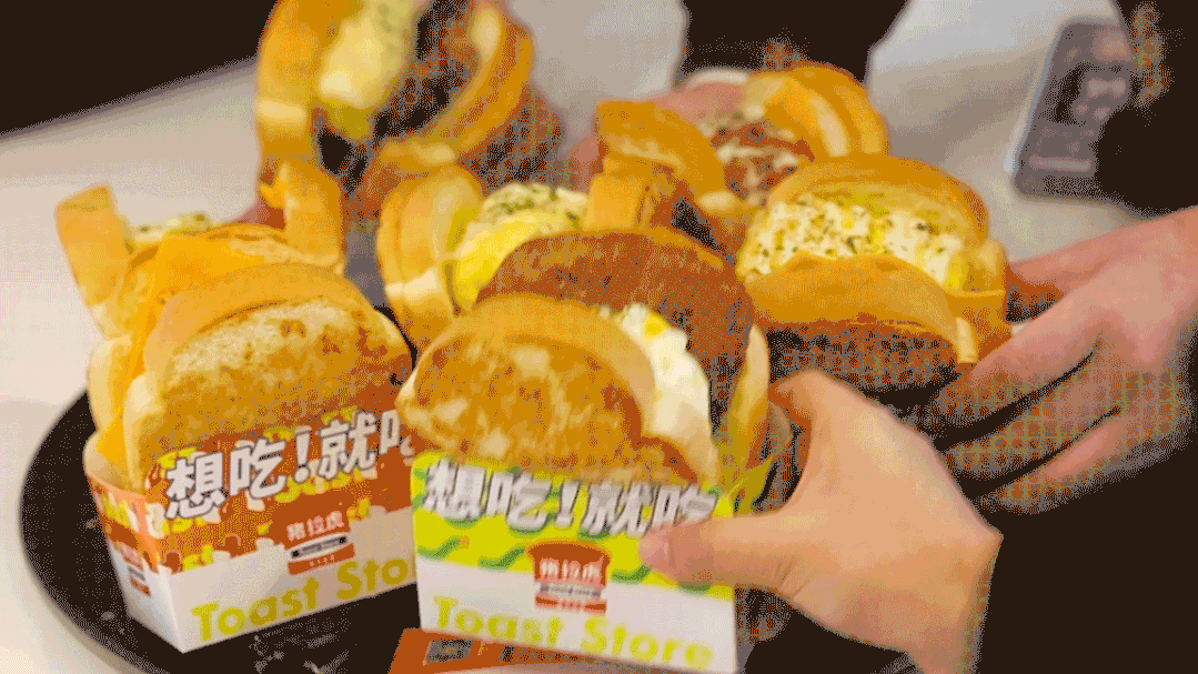 腌制过的猪扒放在高温烤炉上煎的油滋冒泡,全部金黄的时候,就和厚蛋一起塞满整个吐司外皮,咬上一口,外酥里嫩,简直是元气炸弹吧!