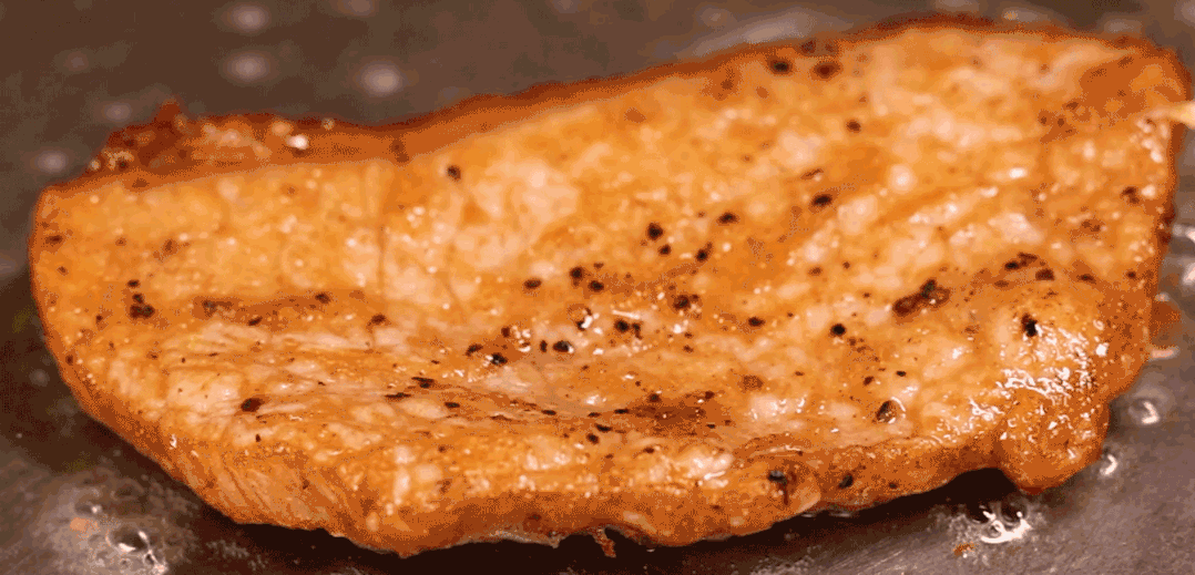 用秘制酱料腌制过的鸡扒,用黄油煎熟,皮被煎制的些许酥脆的时候,就可以翻面,但要保证里面的肉很嫩滑噢!