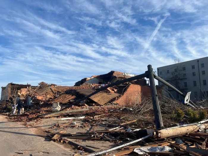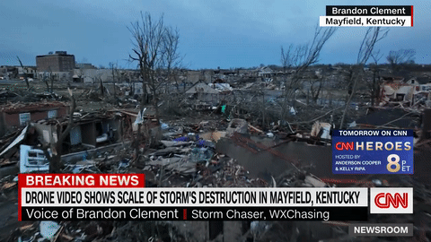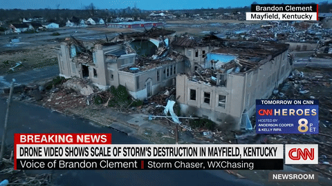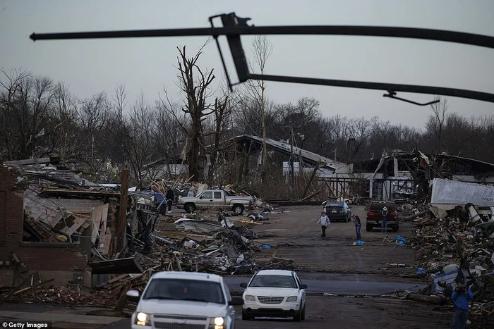 致命的龙卷风席卷该州后,肯塔基州西部有一半的城镇就这样消失了。整个街区夷为平地,房屋被撕裂,扭曲的金属、破碎的树枝和无数砖块,散落一地。