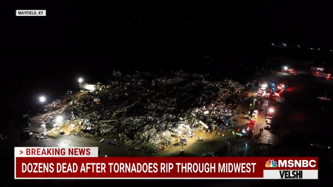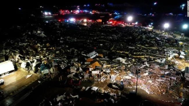 据报道,肯塔基州梅菲尔德市的一处蜡烛工厂在龙卷风中被夷为平地,导致110名工人被埋于废墟之下,目前死亡人数为79人,最终死亡人数可能超过100人。肯塔基州已进入紧急状态,州国民警卫队正在参与救援。