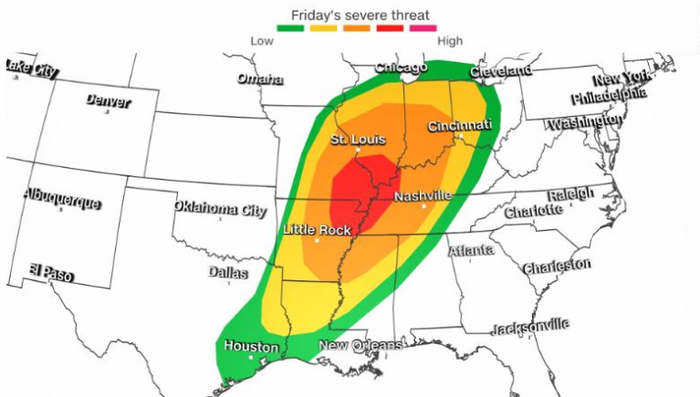 据美国电力跟踪网站数据,此次龙卷风袭击造成其中4个州33万多用户断电。美国国家气象局在10日发布龙卷风预警时表示,预计至少有2500万人口将会受到此次龙卷风袭击的影响。