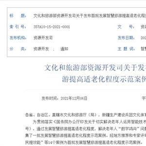 文旅部首批发展智慧旅游提高适老化程度示范案例名单公布 河北1案例入选