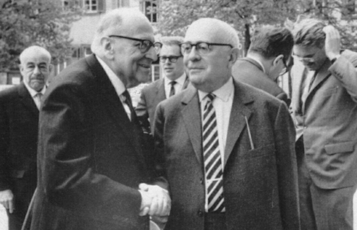 霍克海默(左)与阿多尔诺。两人合著有《启蒙的辩证法》(1947年)。