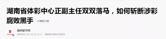 2021年3月19日,湖南体彩系统爆出重磅消息:湖南省体育局体育彩票管理中心主任曹品质、副主任朱卫霞同时被查。