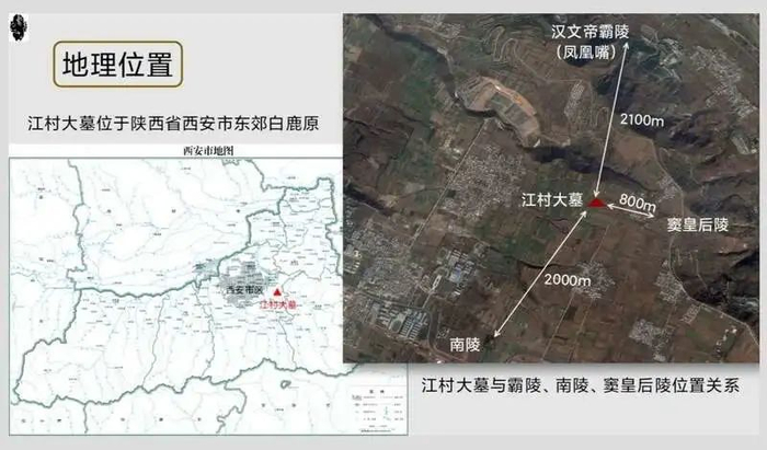 虽有人猜测江村大墓可能就是汉文帝霸陵,但自元代以来的相关记载和考证,普遍认为汉文帝霸陵在江村大墓以北两公里的凤凰嘴。没有确凿证据,不敢下定论。