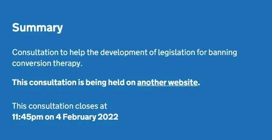 2018年,英国宣布,把禁止性向转换治疗上升为“提升LGBT群体生活质量计划”的主要议程之一。