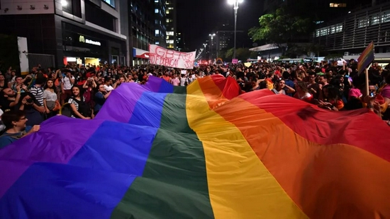 2017年9月22日,巴西圣保罗,人们聚集在一起,反对一法官支持同性恋治疗的倡议