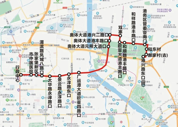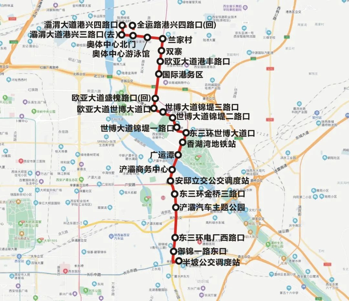 增设站点3个:灞渭大道港兴三路口(去)、灞渭大道港兴四路口、欧亚大道港丰路口。