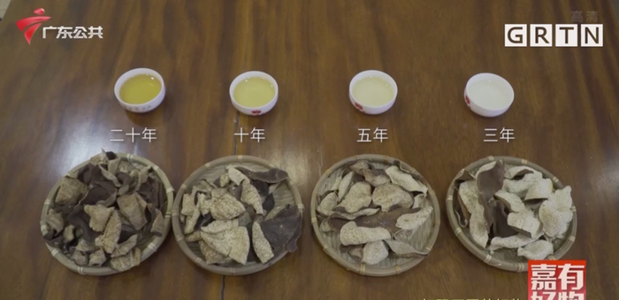 年份越高的陈皮泡出来的茶汤颜色更浓郁