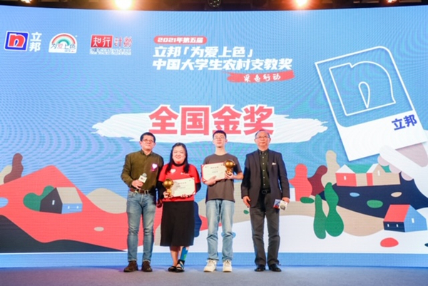 立邦“为爱上色”中国大学生农村支教奖,由立邦中国与“中国大学生知行促进计划”自2017年合作设立,旨在鼓励全国高校大学生深入乡村开展暑期乡村支教,完成实践学校调查和乡村建筑遗产调查。2021年,第五届支教奖在原有基础上全新升级“采色行动”,号召大学生团队携手“青年导师”,用行动记录乡村色彩,用色彩传承文化记忆。