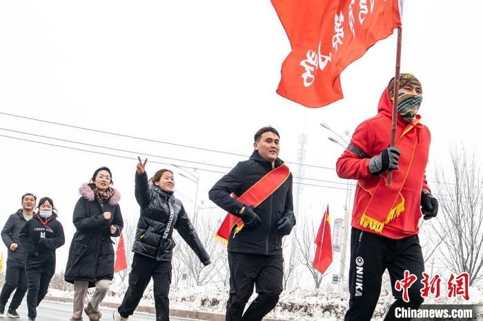 在遵守疫情防控要求的情况下,300多名选手参加了迷你马拉松比赛。沙湾市华录文化广场管理员黄修期和其它6名同事参赛。他说:“我一直有晨跑的习惯,5公里的比赛能够坚持下来。虽然不能去北京冬奥会现场看比赛,以这种方式加油也很有意义。”