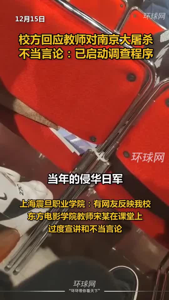 同日晚些时候,@上海震旦职业学院 发布情况通报:有网友在新浪微博反映我校东方电影学院教师宋某某在课堂上发布错误言论。12月15日上午,学校在了解到相关情况后,高度重视,即刻成立工作组,已启动调查程序。学校将根据调查结果,依规依纪予以严肃处理。