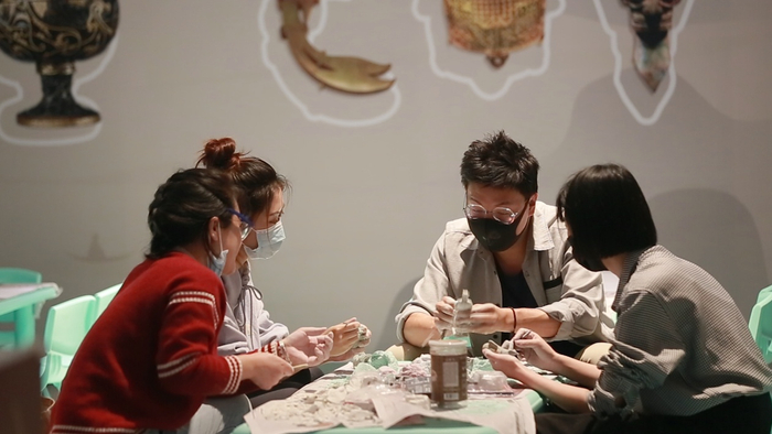 除此之外,在国宝留言与盲盒互动区能感受历史的温度,观众也可以对喜爱的国宝写下一些想说的话;有趣的涂鸦墙则是结合观赏、互动、游乐为一体的区域,观者可现场手工DIY,为国宝绘制、填色,共创一幅穿越时空的国宝出道图。在艺术中探索历史、共同创造,享受与他人一起自由搭建自我意识中的古代生活,以新颖的互动方式搭起观众与历史的桥梁。