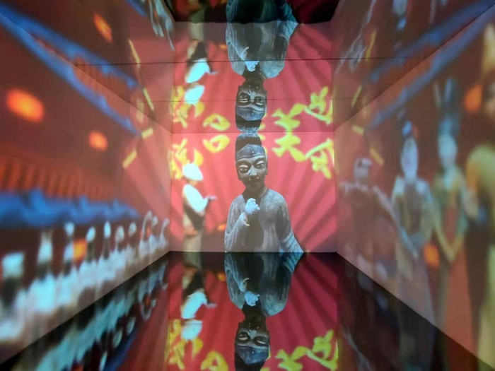 看惯了刀光剑影、喧嚣嘈杂,三星堆青铜人像、东汉击鼓说唱陶俑、唐代仕女俑、阿斯塔那俑、唐彩绘十二生肖俑等国宝会放下沉重的身段,在诙谐幽默的语言中带观众透视“玄机”、洞察“秋毫”。历史不是不说,而是要天马行空的与观众“煮酒”交谈。比如在光影沉浸区里,这些国宝大咖们会借助现代科技技术来一场脱口秀,想不C位出道都难。