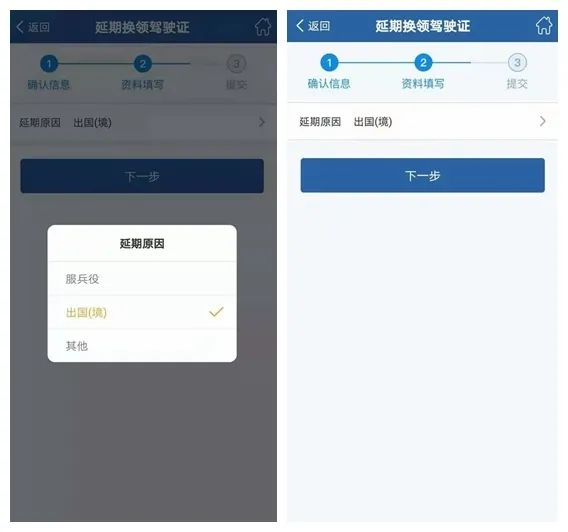 选择【延期原因】,并点击下一步。