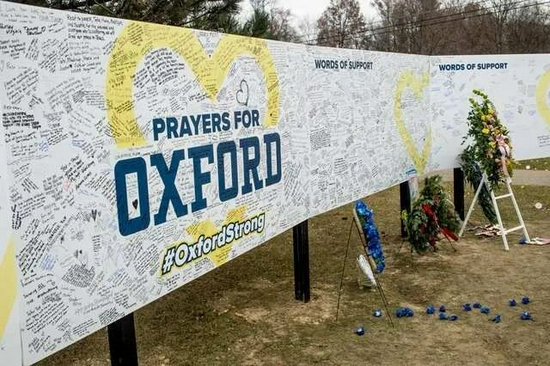 密歇根牛津高中枪击案后学校的留言海报。