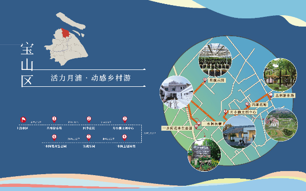 枫泾古镇→花开海上生态园→明月山塘景区→青檐版画艺术中心→廊下生态园→吕巷水果公园→水库村