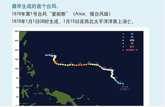 12月我国陆地不少地方虽已进入冬季,但在热带洋面上,气温、海温仍然较高,具备生成台风条件,常年12月,南海和西北太平洋台风平均生成个数为1.4个。