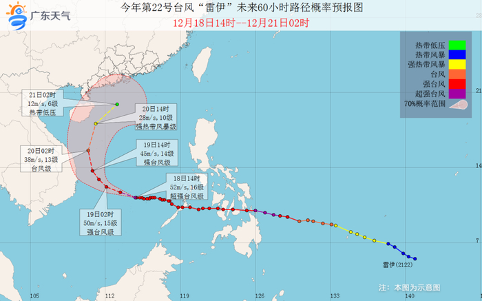 “雷伊”大概率会在冬至日散掉,最靠近我省也是在那天,距离粤西只有200多公里,受其减弱后的残余环流影响,20日—21日,我省中南部将会有一次中到大雨局地暴雨降水过程。