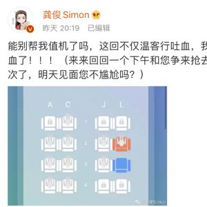 ▲艺人龚俊发微博吐槽被“值机”。 图/龚俊微博截图