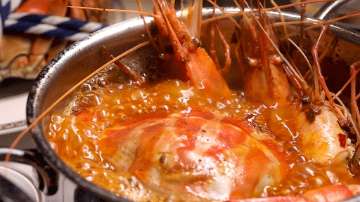 每个人都有独立的涮锅、锅底可以选择红汤or清汤,把海鲜们哐哐往里倒,自制的海鲜锅就有了,边涮边吃!